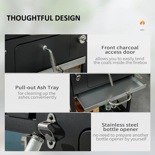 Outsunny Adjustable Charcoal Pan BBQ, with Thermometer and Warming Rack