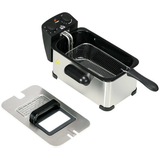 HOMCOM 3 Litre Stainless Steel Deep Fat Fryer with Adjustable Temp, 60min Timer, Viewing Window and Safety Cut Out, 2000W