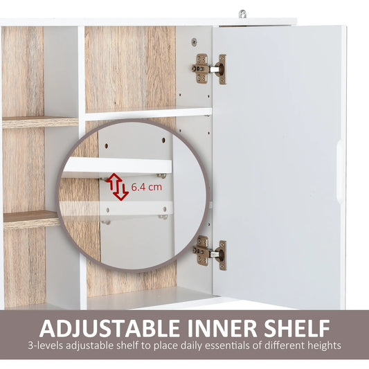 HOMCOM Bathroom Mirror Cabinet, Wall Mounted Storage Cabinet with Open Cupboard and Adjustable Shelf, White
