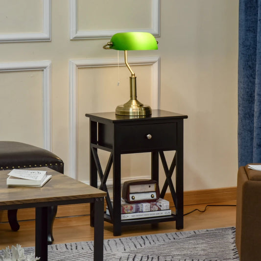 HOMCOM Banker's Desk Lamp with Antique Bronze Tone Base, Table Lamp with Green Glass Shade for Home Office, Green