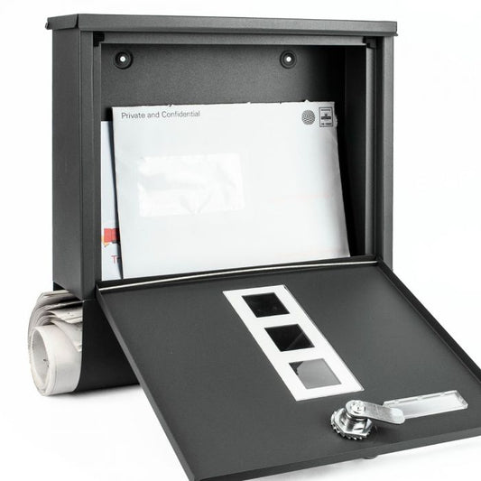 Wall-Mounted Mailbox Galvanised Steel with Secure Lock, 2 Keys & Name Card Slot - Dark Grey