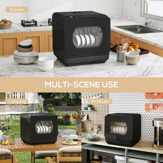 HOMCOM 6L Five-Mode Kitchen Tabletop Dishwasher - Black