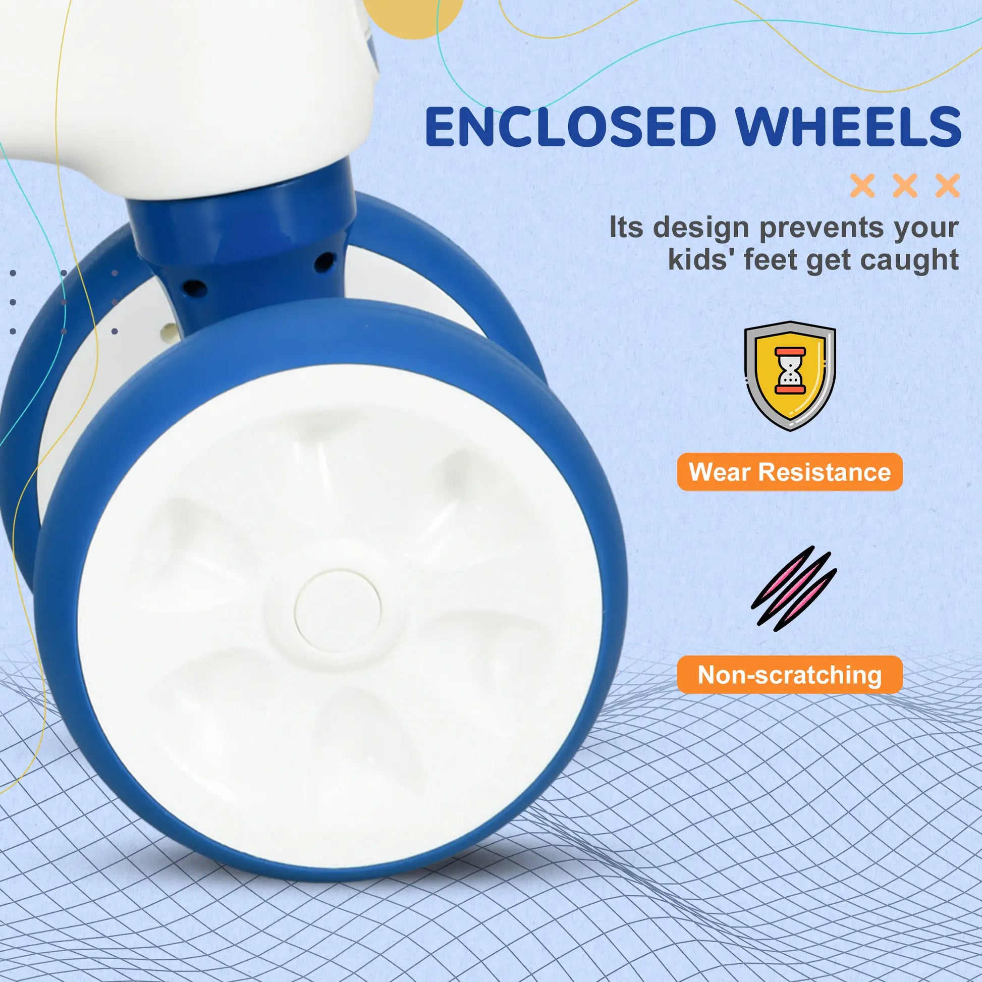 AIYAPLAY Balance Bike for Ages 18-36 Months, with Anti-Slip Handlebars, Four Wheels, No Pedal - Blue