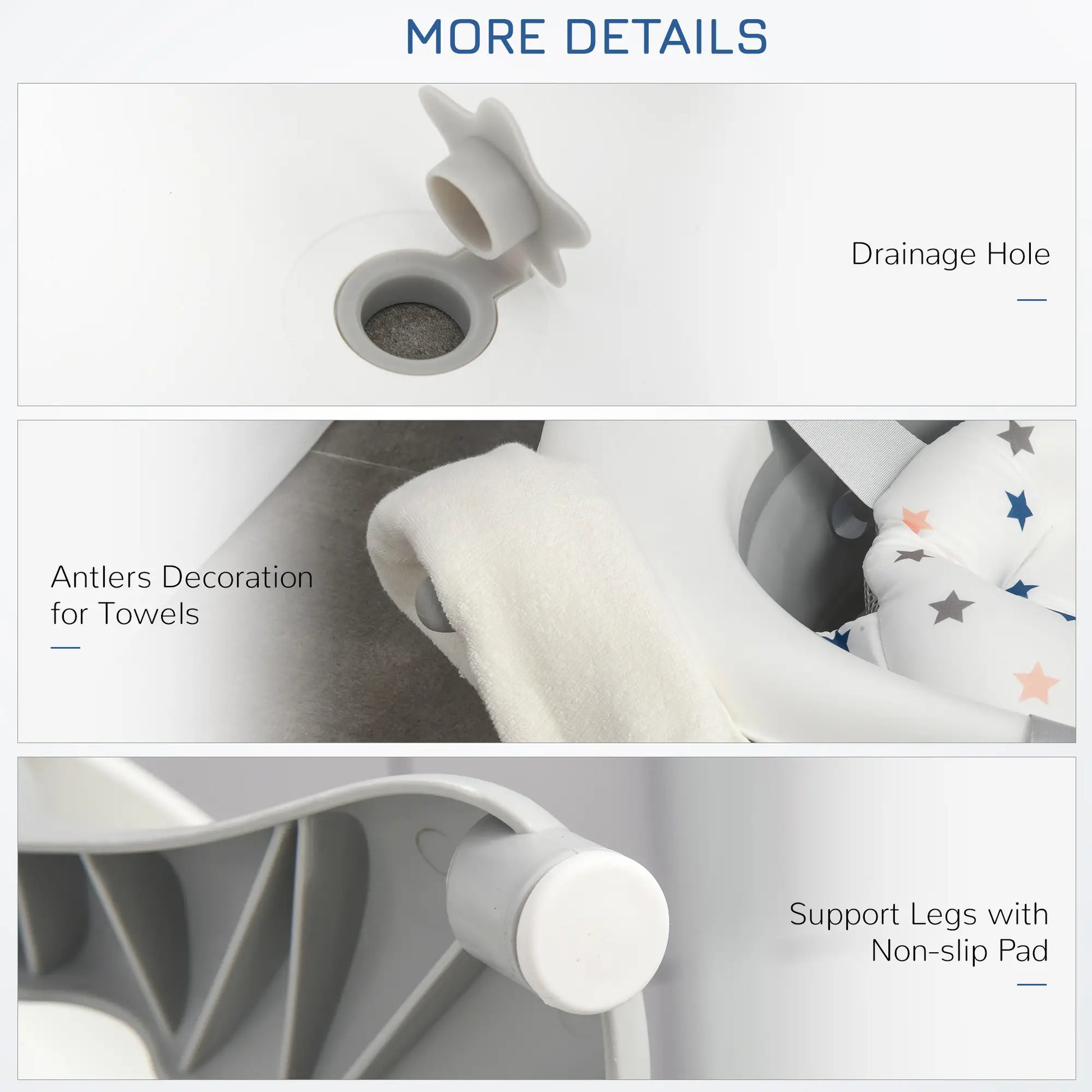 Make Your Baby's Bath Times Fun and Safe with This Tub From HOMCOM. The Curved and Ergonomic Design Makes Cleaning Comfortable. Most Importantly, It's Fitted with a Temperature Indication Plug, Which Turns White When The Water Reaches 37℃ To Ensure They Won't Burn. The Compact Size, with Folding Legs, Means It's Easy To Store and Set Up In The Sink Or Your Bath. Finished with Non-Slip Foot Pads For Extra Safety and Stability.