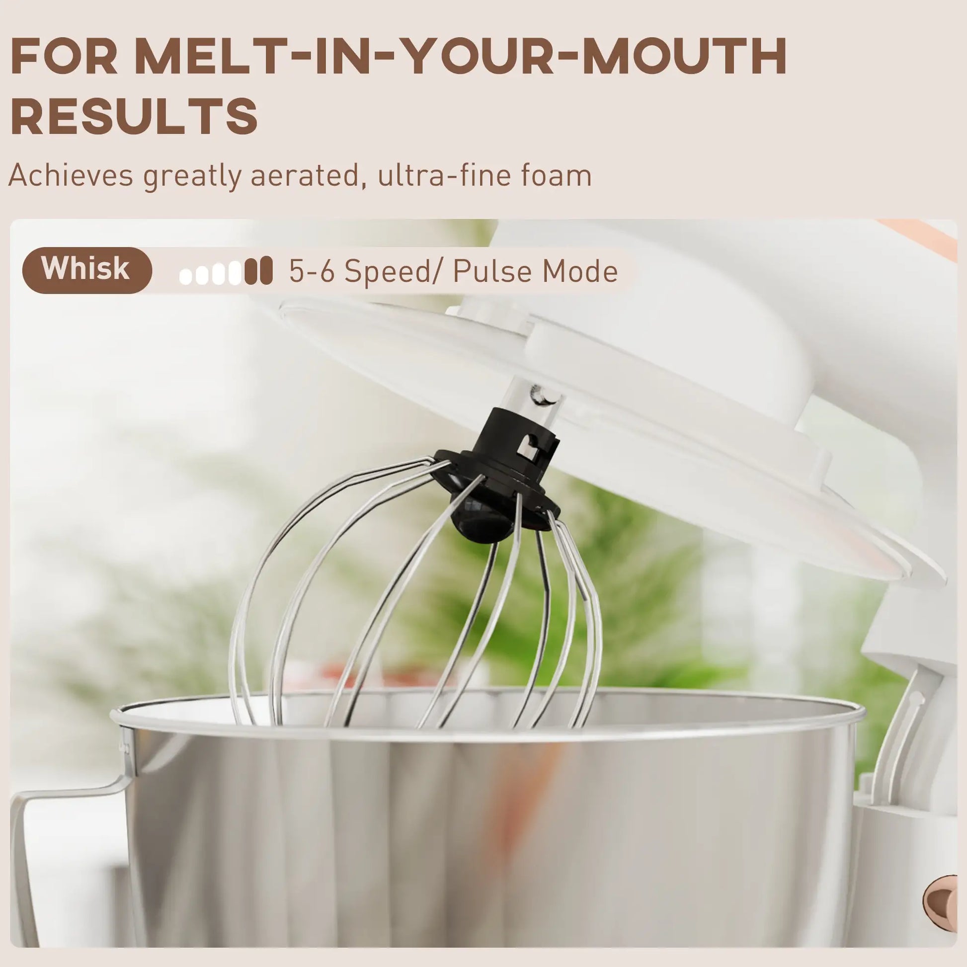 HOMCOM 1300W Home Kitchen Stand Mixer, with Accessories Versatile & Powerful - White
