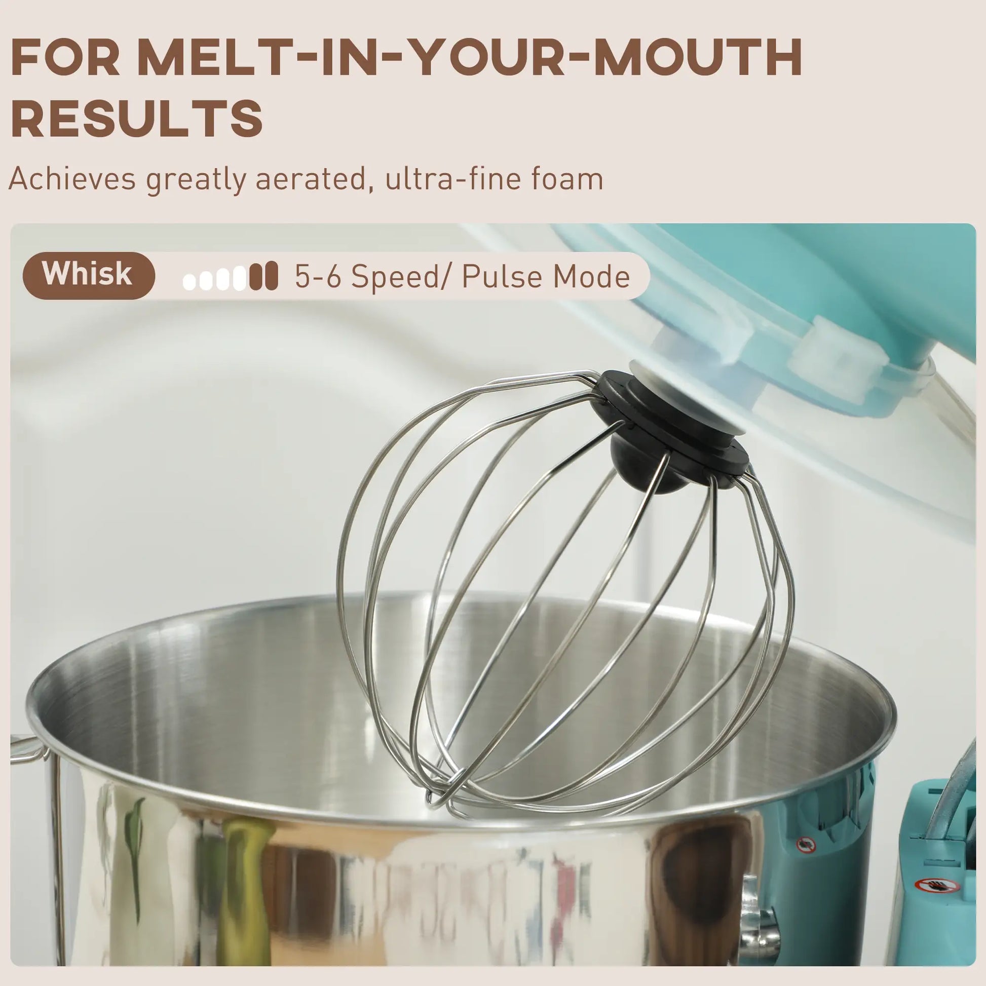 Six Speeds and Pulse: Set Dough Mixer To Work How You Want. Use It From Delicately Whisking Fluffy Egg Whites To Quickly Mixing Smooth Cake Batters.
