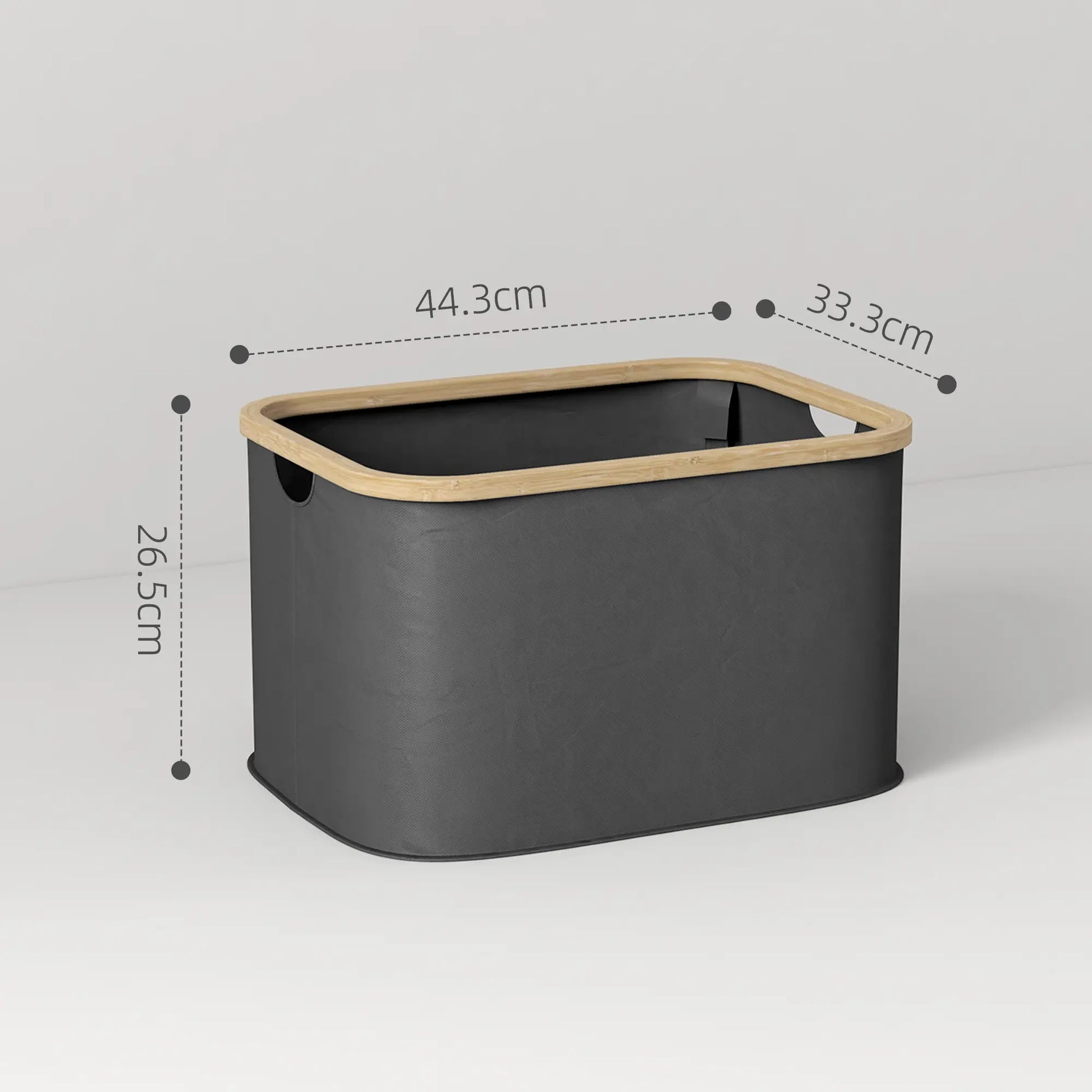 HOMCOM 36L Foldable Laundry Basket, with Bamboo Top Portable and Foldable - Black