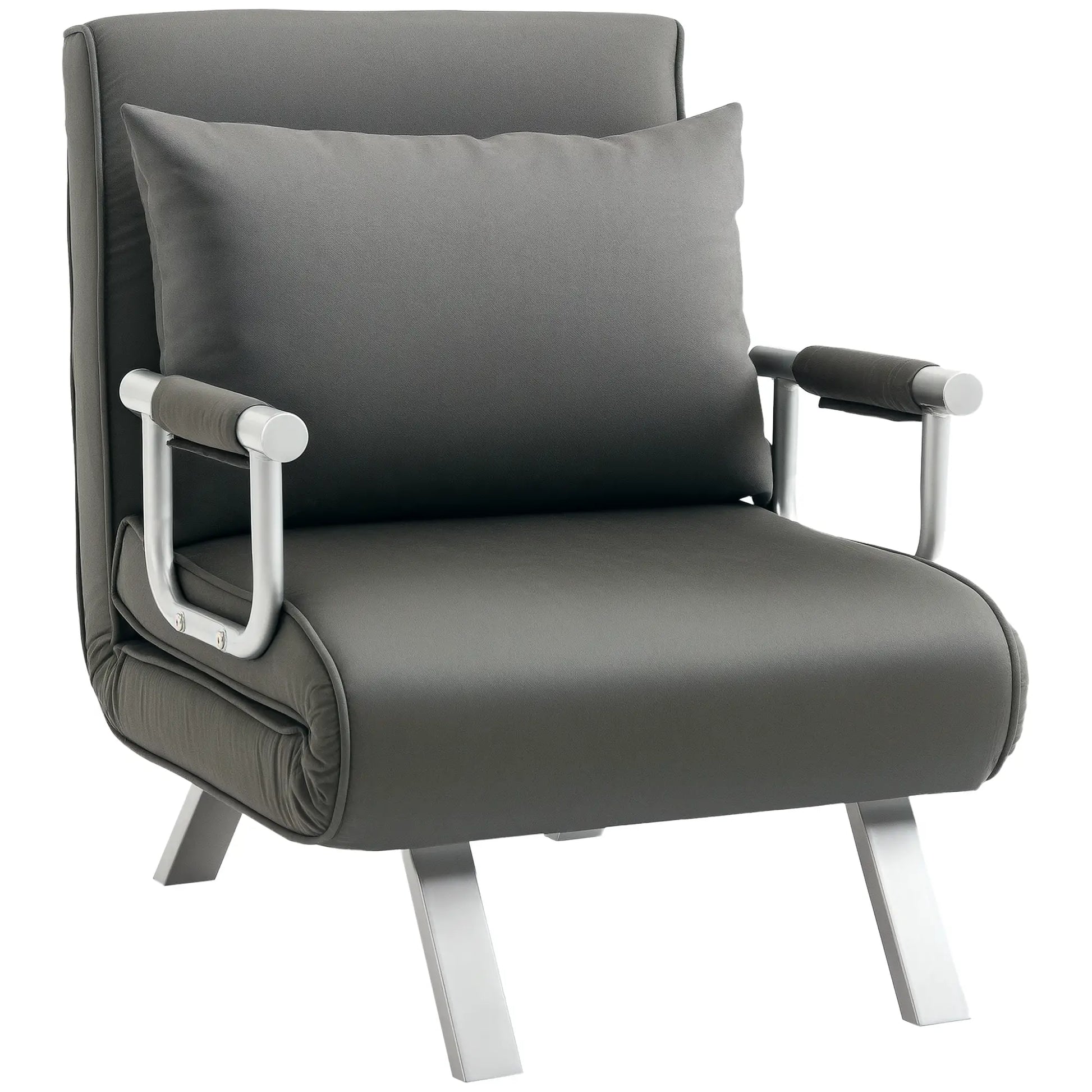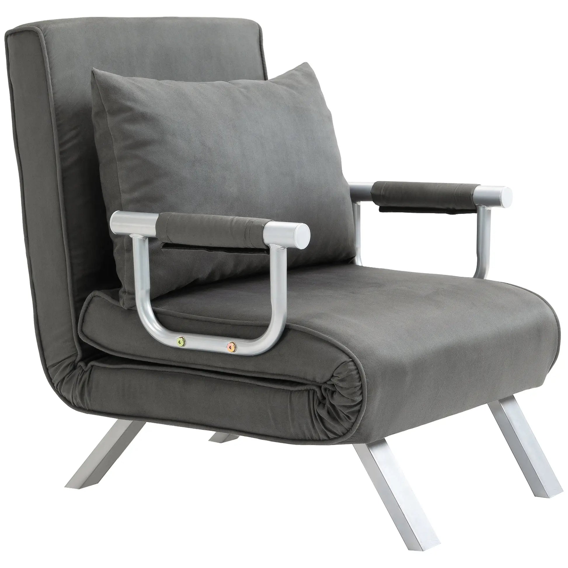 HOMCOM 4-in-1 Faux Suede Chair Bed with Metal Frame - Grey