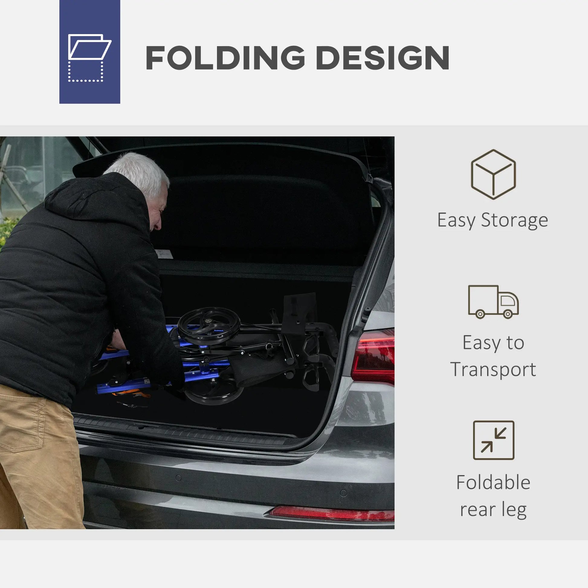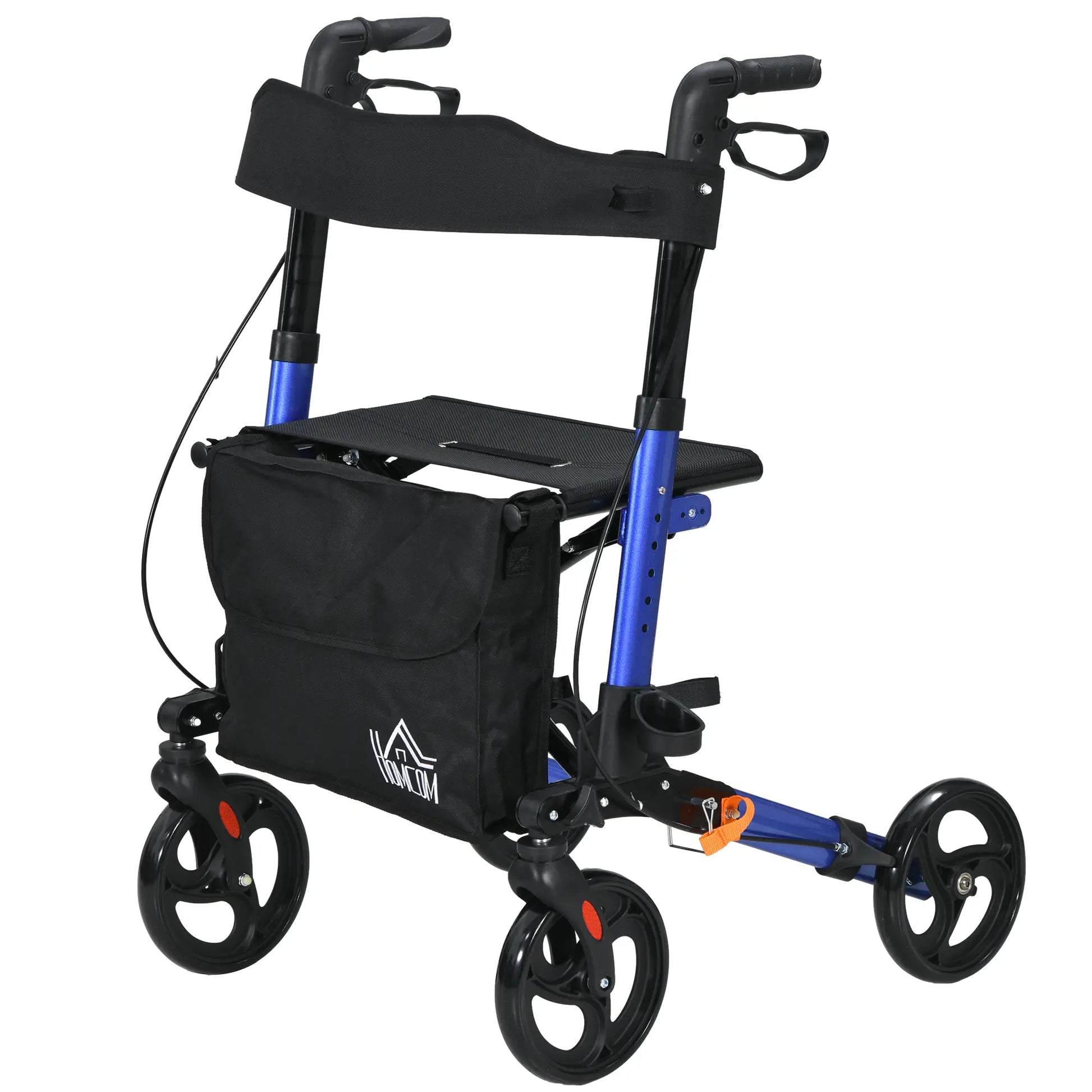 HOMCOM 4 Wheel Rollator with Seat and Back, Folding Mobility Walker with Carry Bag, Adjustable Height, Walking Frame for Seniors, Blue