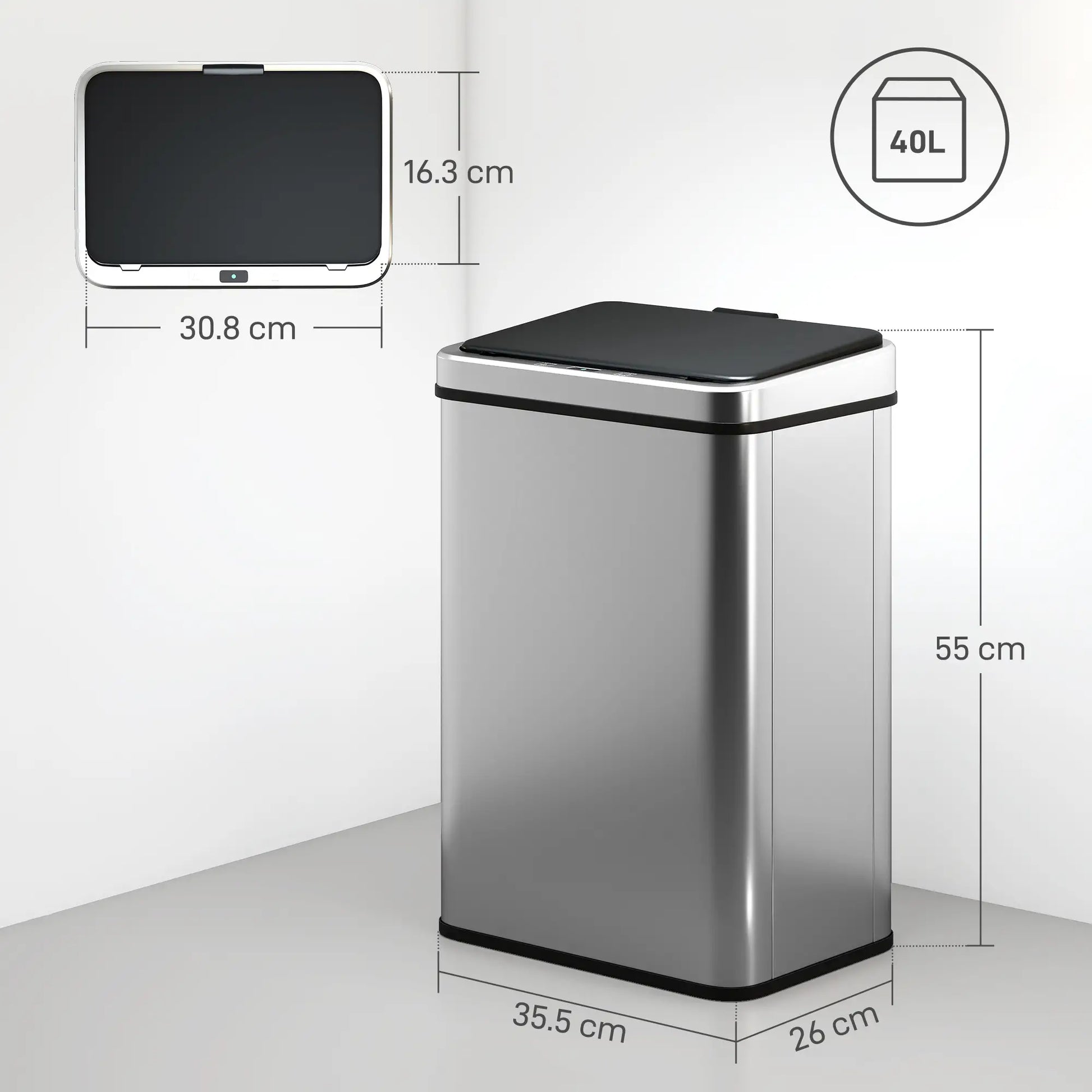 HOMCOM 40L Sensor Bin with Quiet Lid, Automatic Touchless Motion Sensor Kitchen Bin with Fingerprint Resistant Stainless Steel, Silver Tone