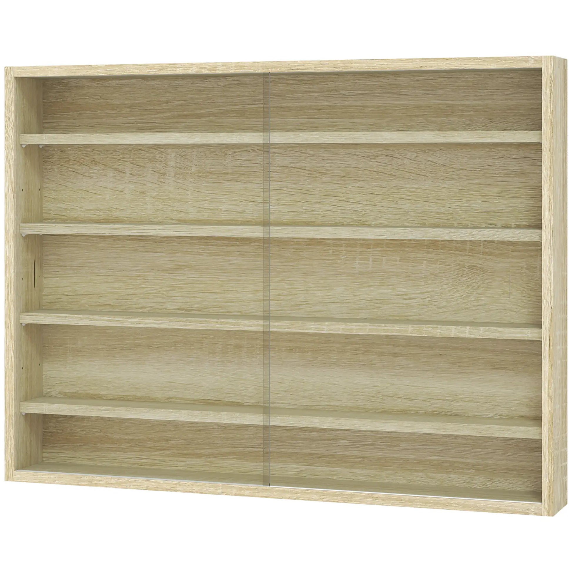 HOMCOM 5-Tier Wall Display Shelf Unit Cabinet w/ 4 Adjustable Shelves Glass Doors Home Office Ornaments, Oak