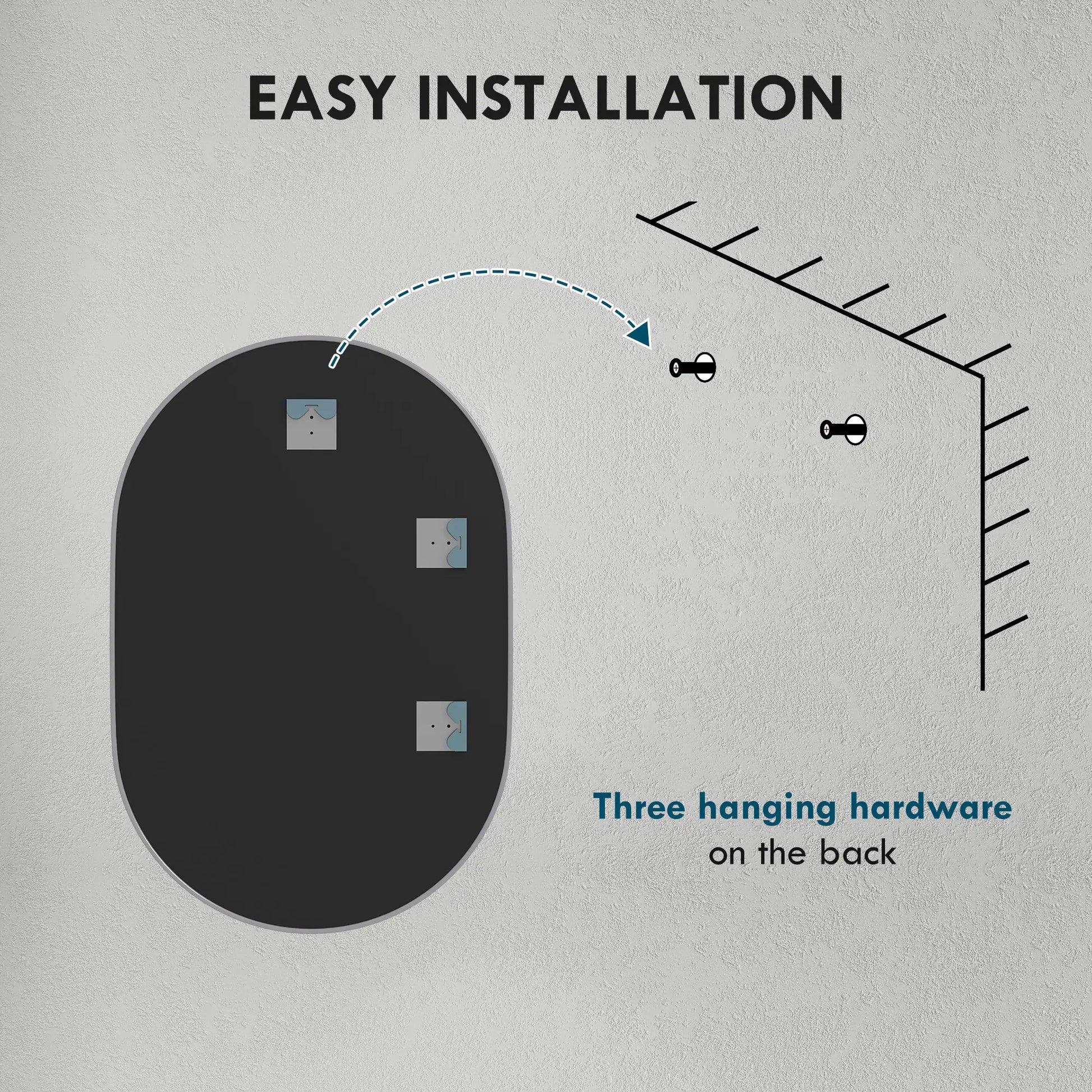 An Essential For Every Morning Routine, with This HOMCOM Bathroom Mirror. Its Smooth Oval Shape Makes It Versatile - Looks Great Everywhere - Set It Vertically Or Horizontally To Suit You. The Aluminium Frame Means A Protective Casing, Complete with Back Metal Hooks For Hassle-free Hanging.