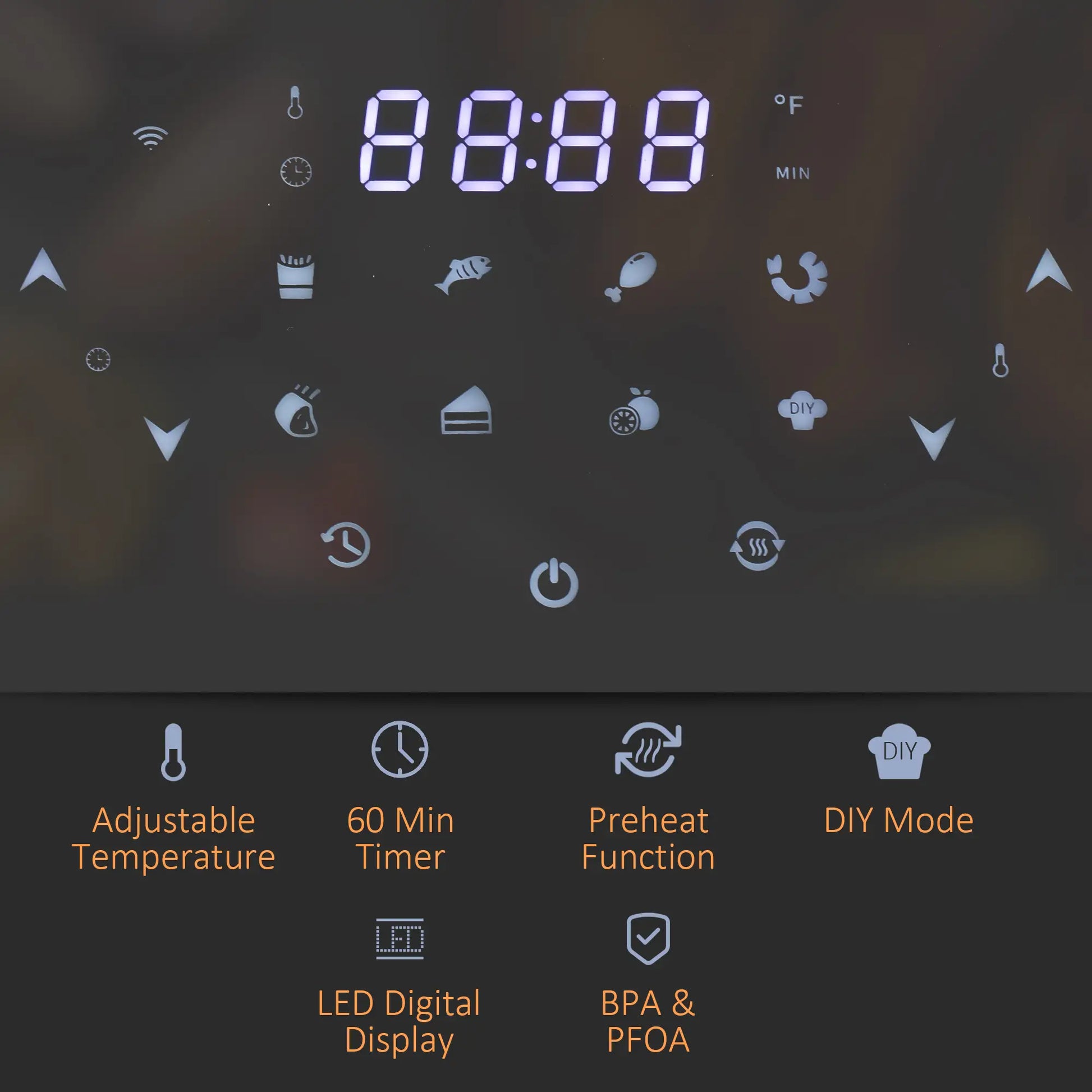 HOMCOM 7L Family Size Digital Air Fryer Oven with Roast, Broil, Bake, Dehydrate, 8 Presets, Rapid Air Circulation, Timer, Preheat, 1500W