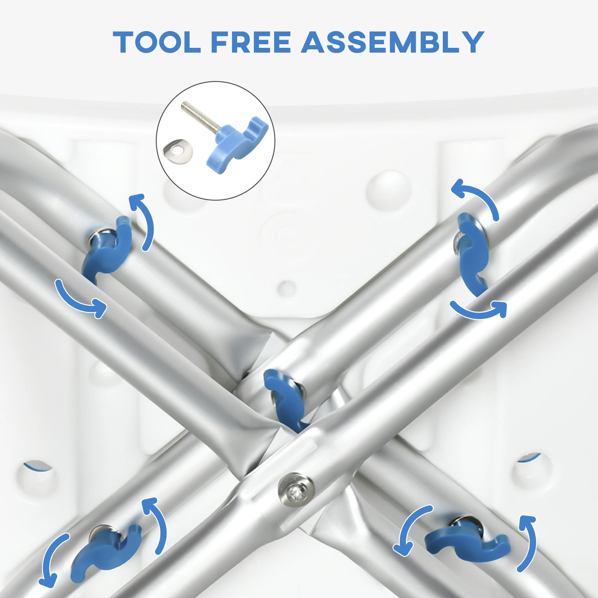 - Aluminium Frame: Strong and Steady Core When You Sit, This Bath Chair Comes with an 'X' Panel For Extra Support. Suction Foot Pads To Grip The Wet Ground For Safety.