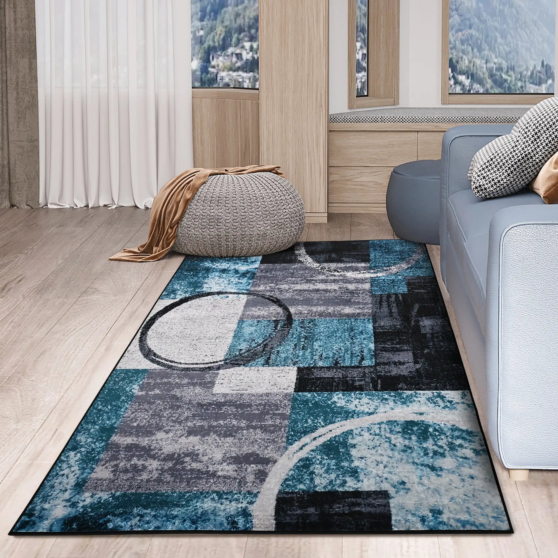 Eye-Catching Design: This Machine Made Geometric Blue Rug Makes The Space Seem Pop and Welcoming, Which Embodies A Modern Look That Will Never Go Out Of Style