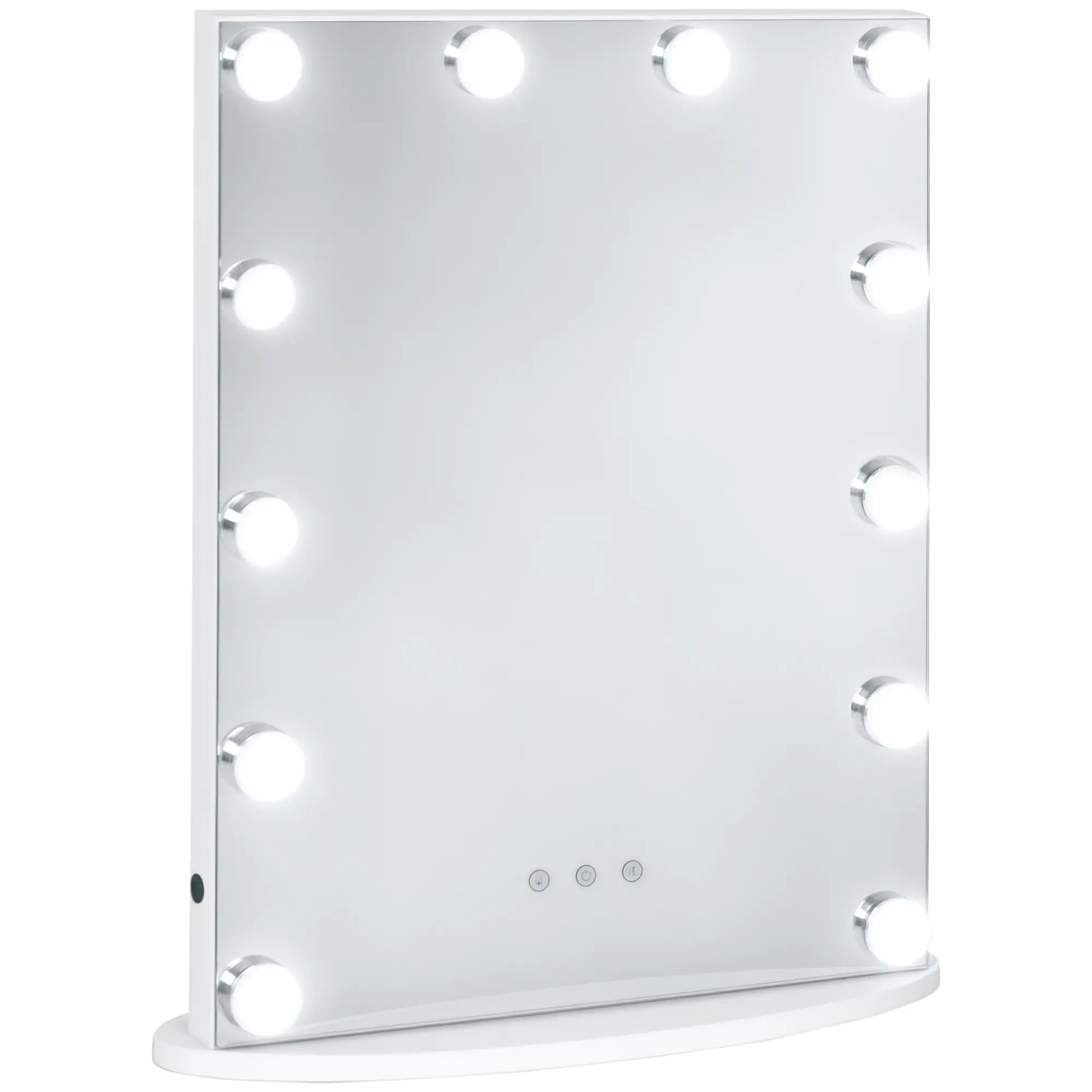 Be The Star Of Your Everyday Life with This Glamorous Hollywood Mirror From HOMCOM. This Classic Design Is a Must For Every Bedroom and Dressing Space - with Its Large and Clear Mirror, Surrounded By 12 LED Bulbs For The Perfect Amount Of Illumination To Get Ready Easily with Plenty Of Light. Each Bulb Is Dimmable and Can Be Set To Three Different Shades - Warm White, White and Cold White - Perfect For Day and Night Use. It's Fitted On A Base To Keep It Steady, and Is Finished with a Small Middle Button For Easy Operation.
