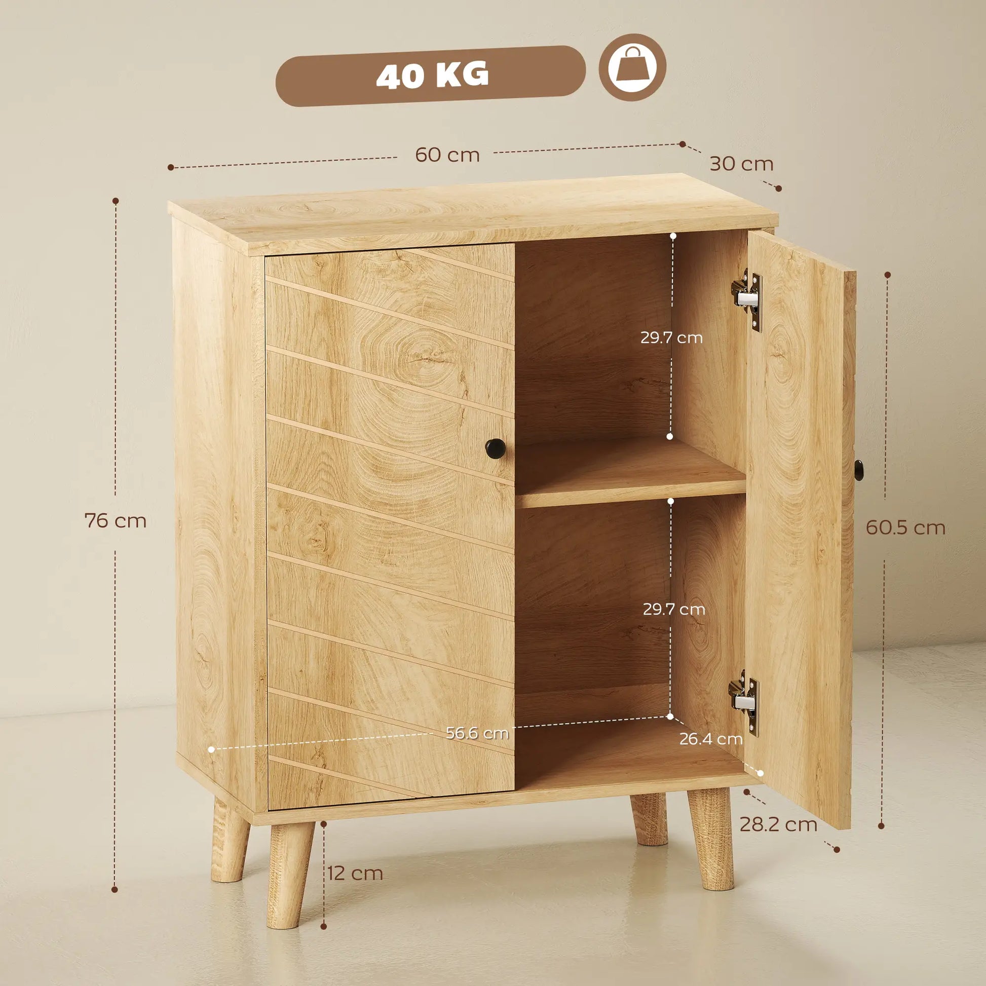HOMCOM Vintage Storage Cabinet with Double Chevron Doors - Natural Wood Effect