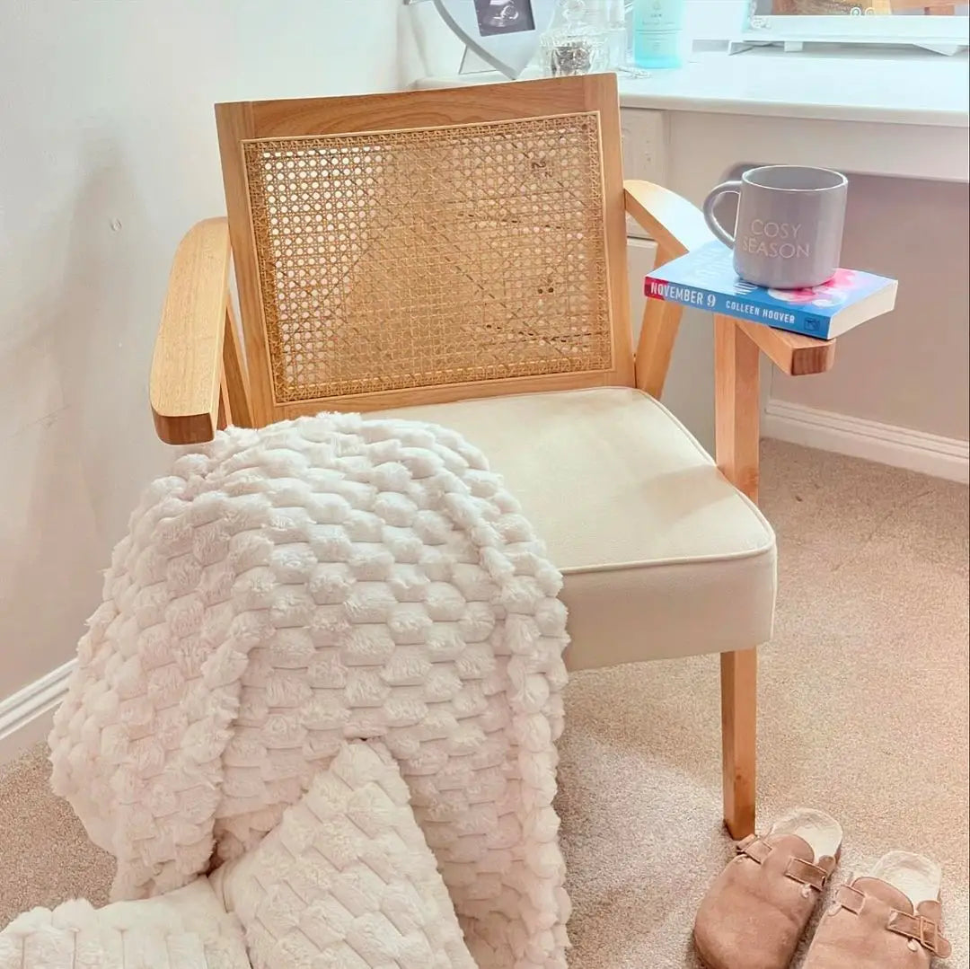 RATTAN WEAVE PANEL DESIGN: On The Back Of This Bedroom Chair, Brings A Natural Touch and Complements The Rustic Finish Of The Frame