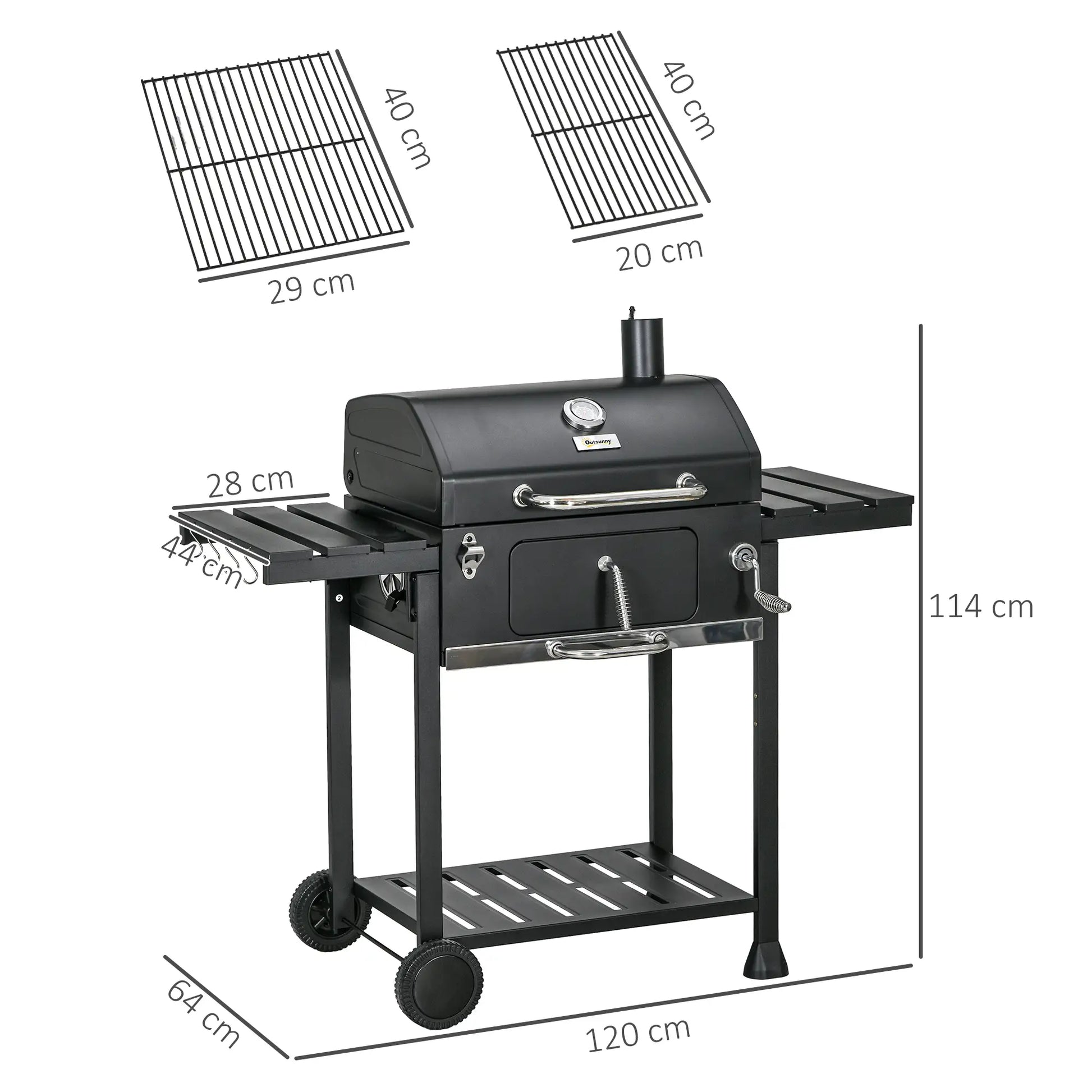 Get Friends Together and Enjoy Food From Your Own Personal BBQ! This Outsunny Grill Has Enough Room To Make Between 5-10 Food Servings - Enough For Everyone. It Features a Height Adjustable Coal Pan - Move Up and Down To Control The Smoke Intensity. The Lid Is Fitted with a Thermometer, So You Can See The Inside Temperature. Complete with Handy Bottle Opener.
