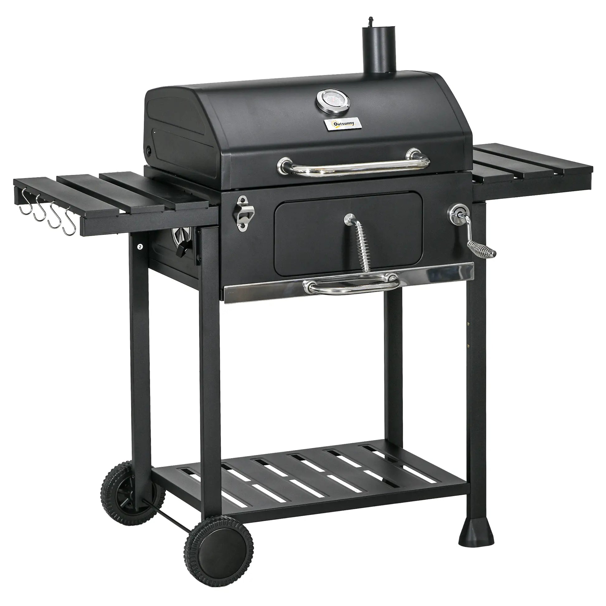 Outsunny Adjustable Charcoal Pan BBQ, with Thermometer and Warming Rack