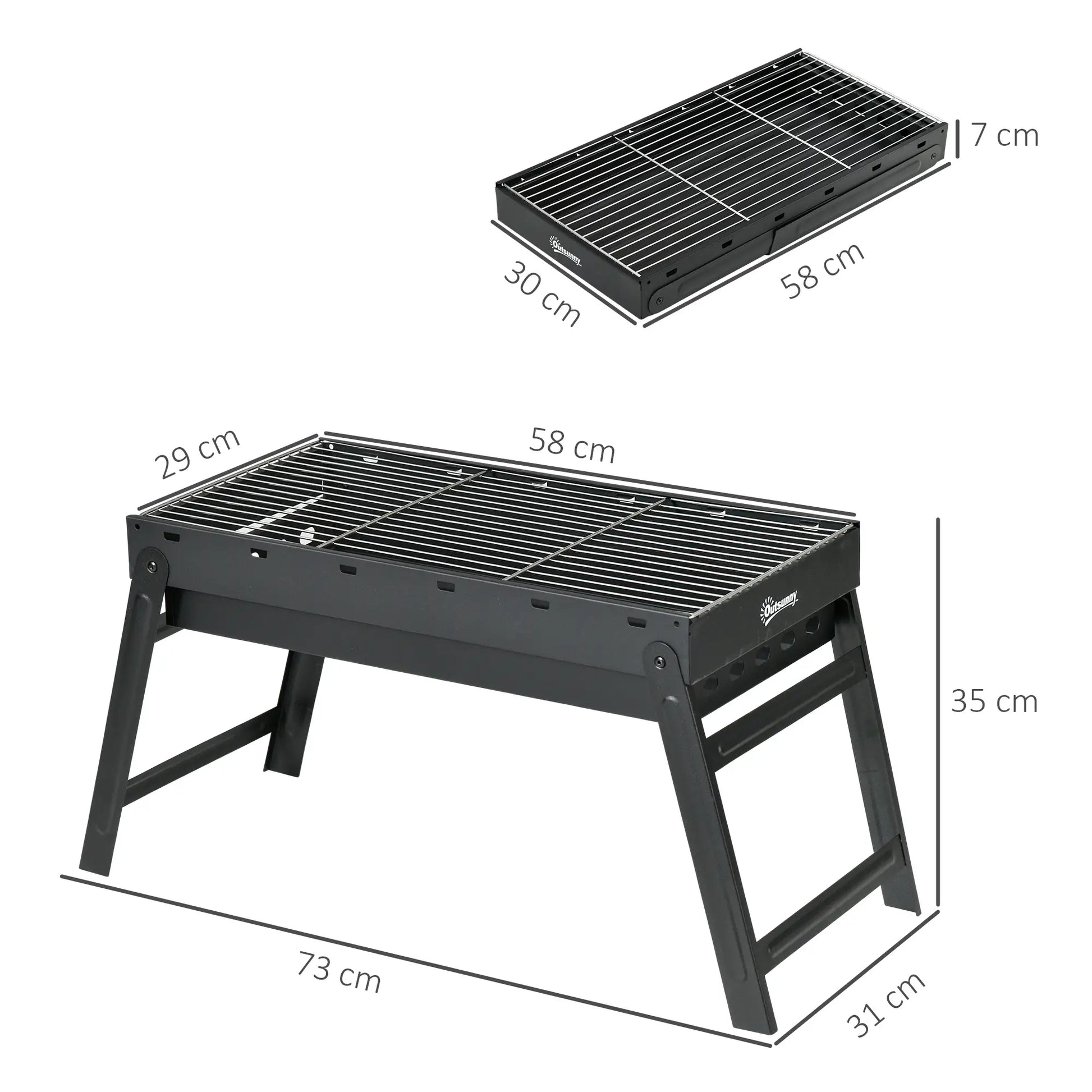 Outsunny Barbecue Foldable Charcoal Grill Portable BBQ for Camping & Hiking - Black