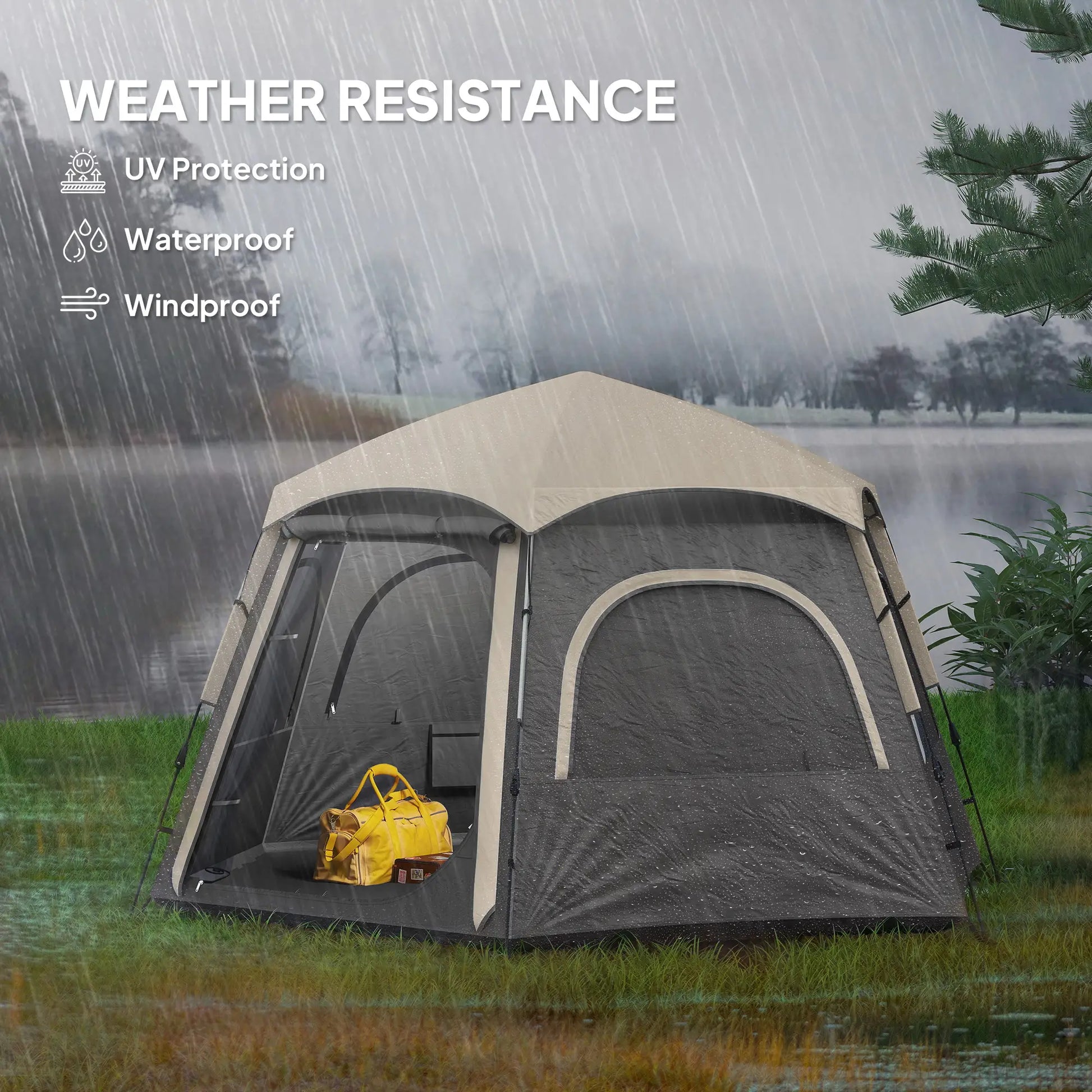 Stay Dry & Sun-Protected: Made From 210d Oxford Fabric with a Silver Coating, This Waterproof Tent Boasts 3000 Mm Waterproofing and UV Protection, Shielding You From Unexpected Weather. Ground Stakes And Guy Ropes Provide Extra Stability Against Wind.