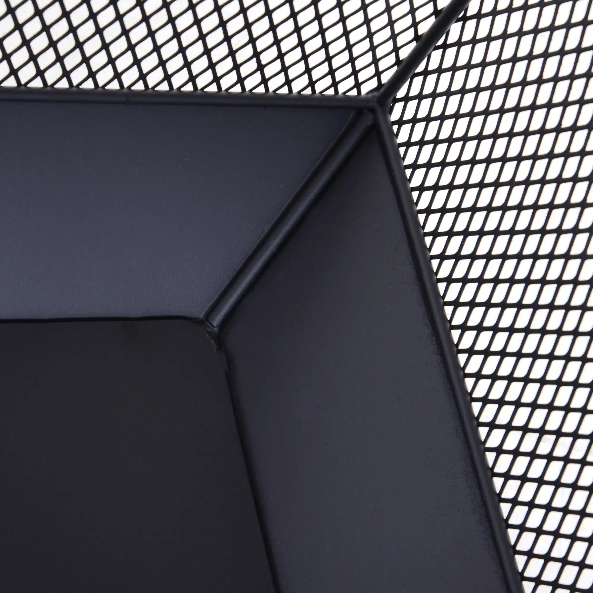 Outsunny Metal Square Fire Pit Outdoor Mesh Firepit Brazier w/ Lid, Log Grate, Camping, Bonfire, Wood Burning Stove, Black
