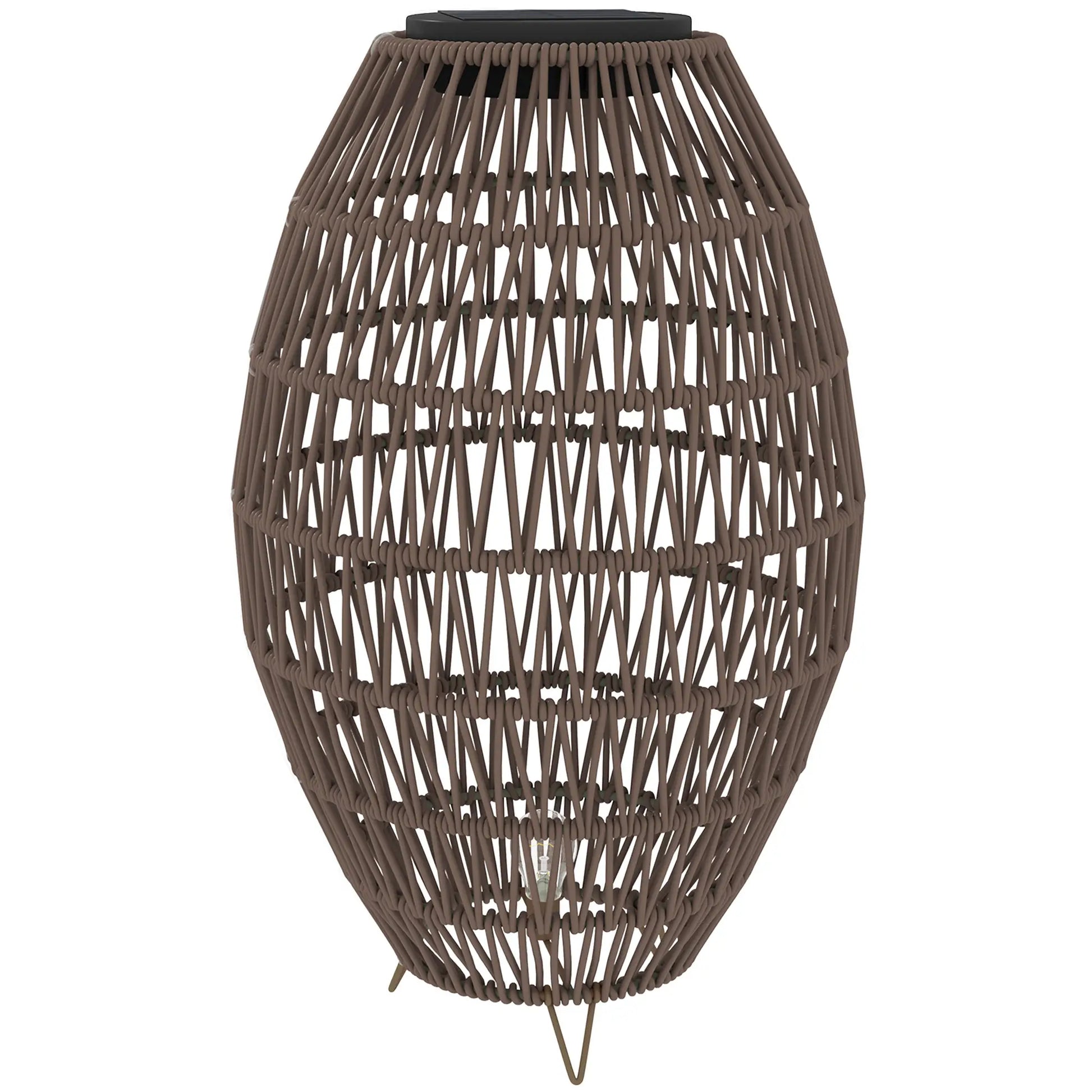 Outsunny Outdoor Decorative Rattan Solar Lamp, Garden Solar Lantern with Auto On/Off Light, IP44 Waterproof, Dark Brown