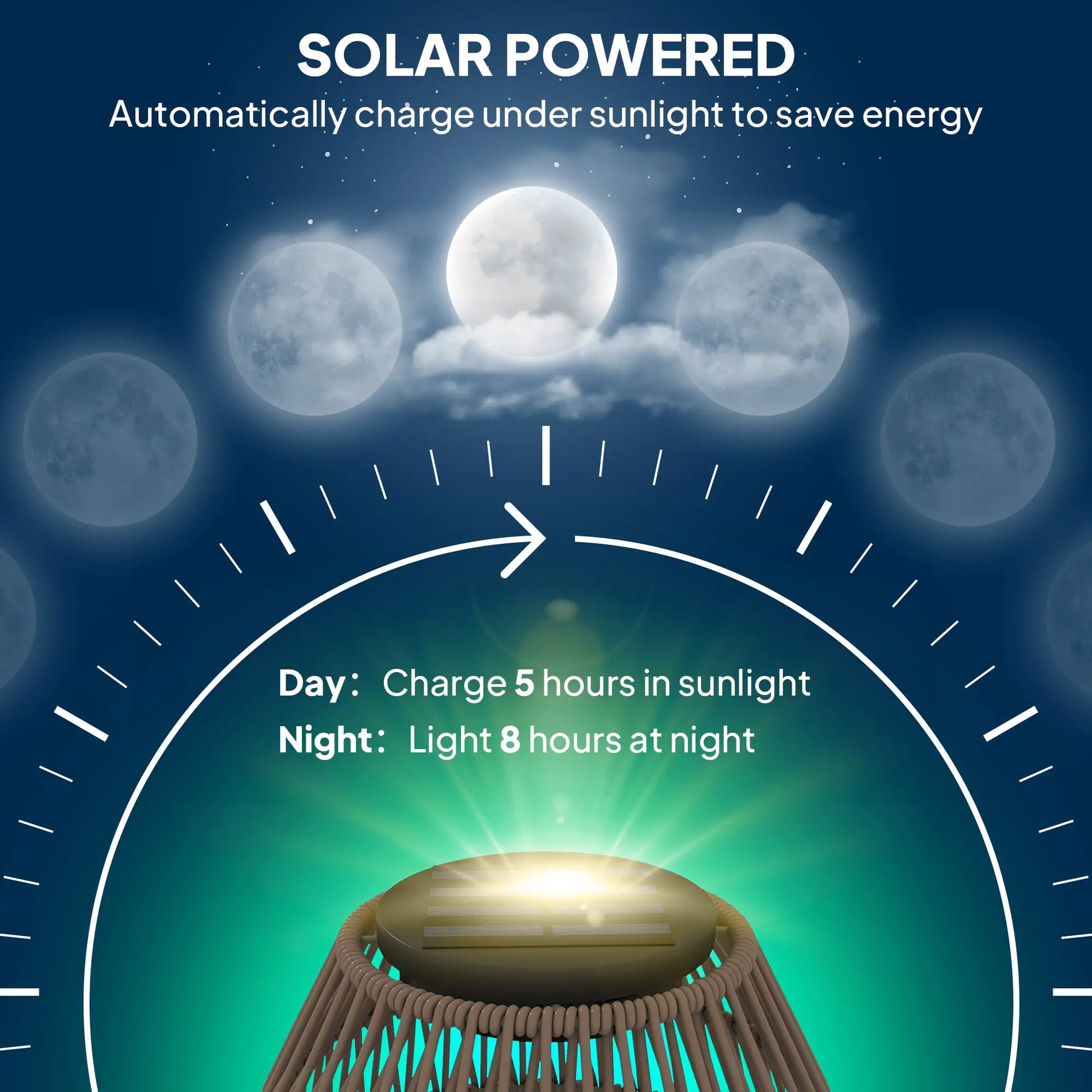Solar Panel Charging: Automatically Turn Off at Dawn and Light Up at Dusk with "On" Mode Switch. The Outdoor Lantern Delivers Up To 8 Hours Of Illumination After 5-Hour Fully Charged In Sufficient Sunlight.
