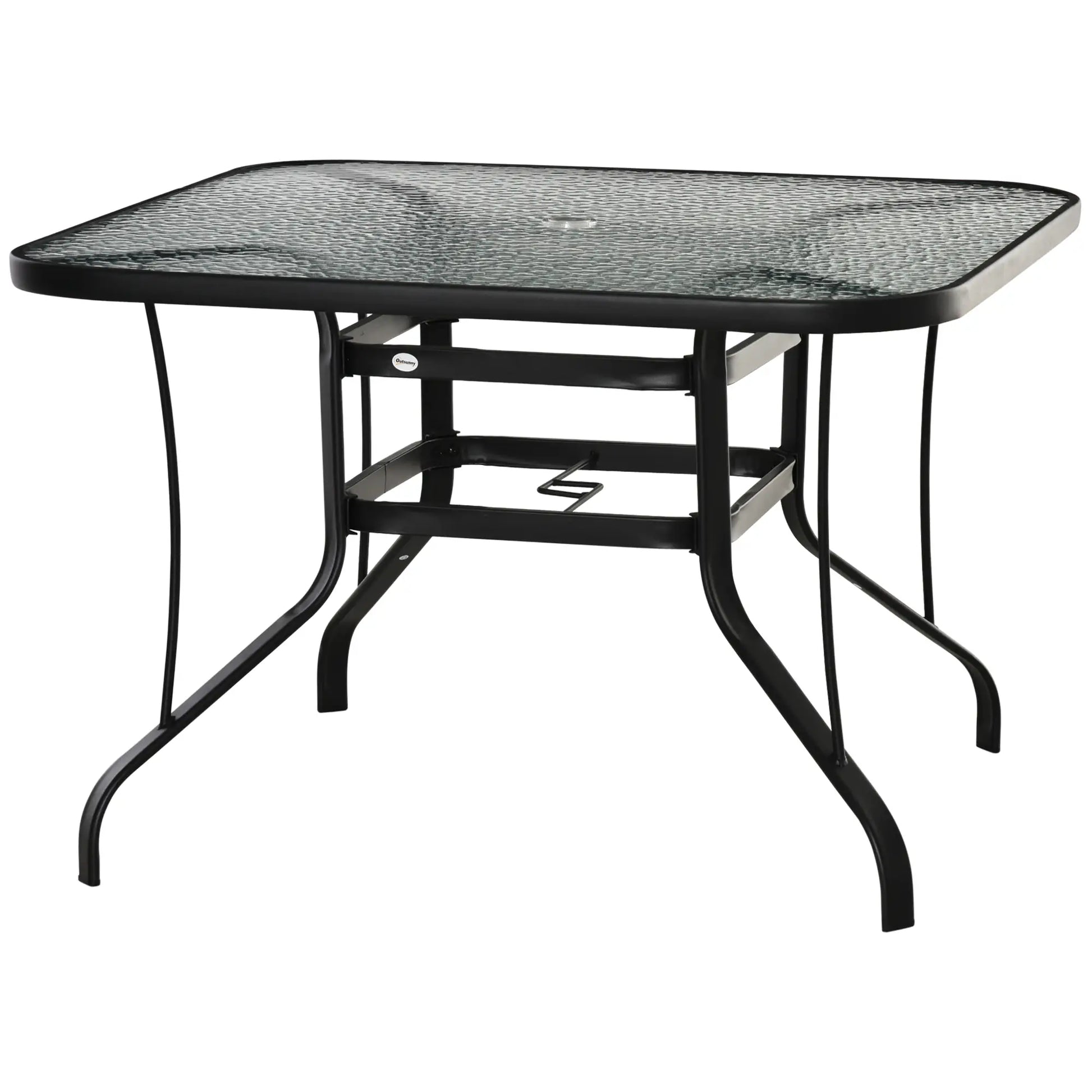 Outsunny Square Outdoor Garden Dining Table with Parasol Hole, Tempered Glass Top, Steel Frame for Garden, Lawn, Patio, Black