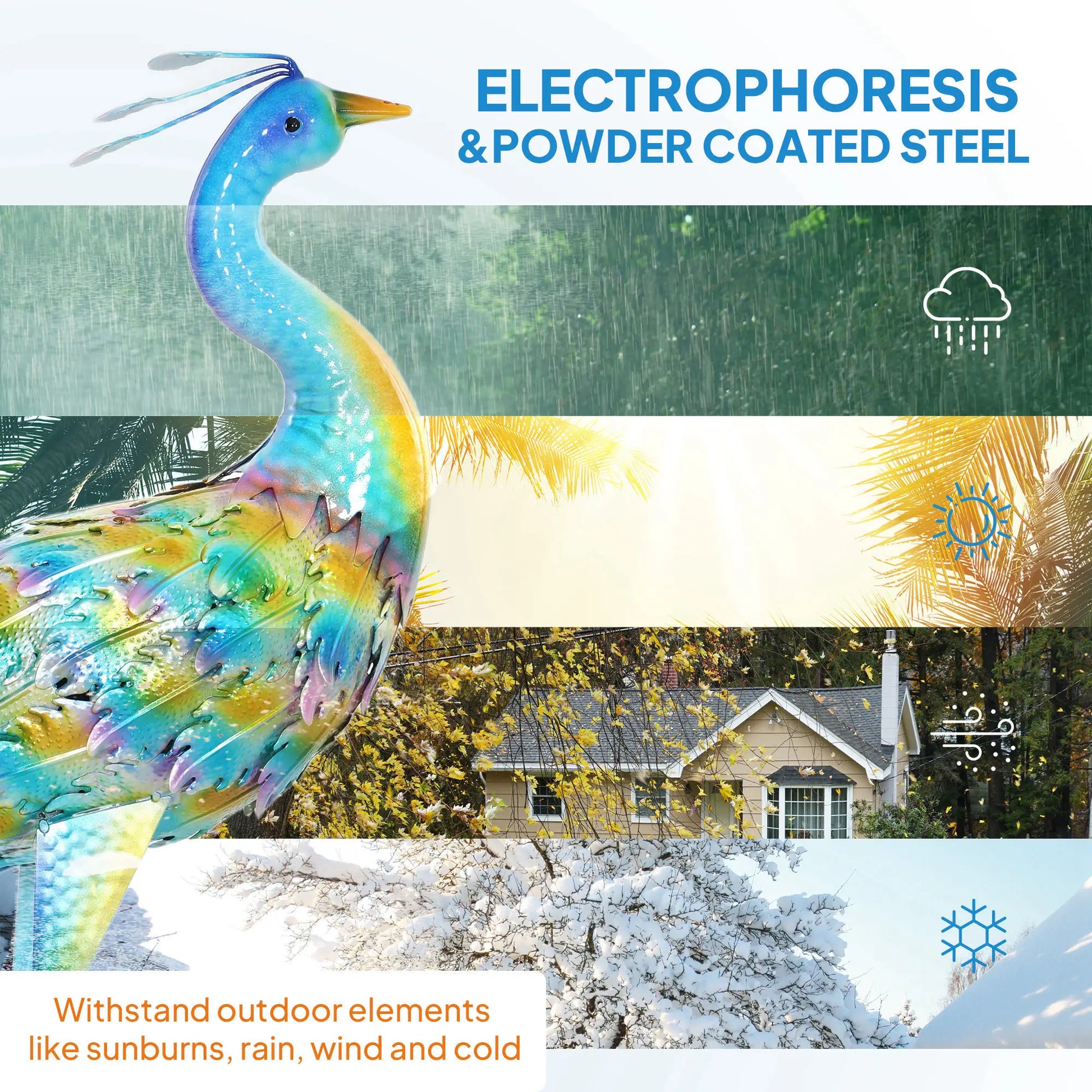A Bit Monotonous In The Garden? Looking For An Eye-Catching Decorative Piece? Let Outsunny Garden Art Sculpture Lights Up Your Garden. Bright Colours and Vivid Details. Built To withstand Outdoor Elements, This Metal Garden Statue Undergoes Electrophoresis and Powder Coating Processes, While Its Stable Standing Is Enhanced By Two U-Shaped Ground Stakes.