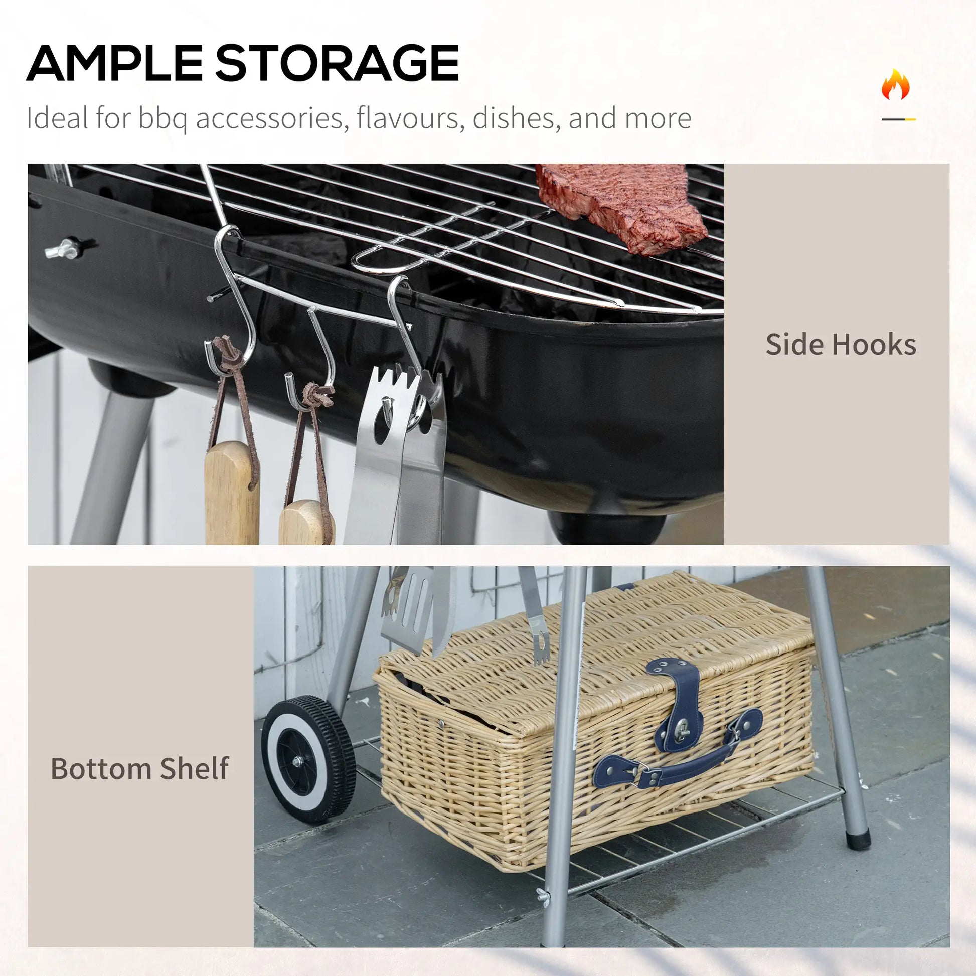 Outsunny Portable BBQ Charcoal Grill with Cooking Utensils, Smoker Grill with Lid for Outdoor Barbecues, Camping, Picnic