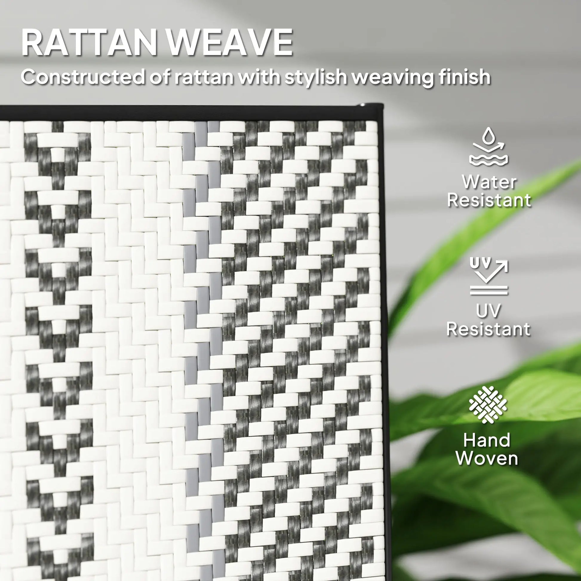 Rattan Seats: Handwoven Plastic Wicker Rattan For a Stylish Garden Look. Robust and Suitable For Outdoor Use. High Back and Arms On Chair For Support.