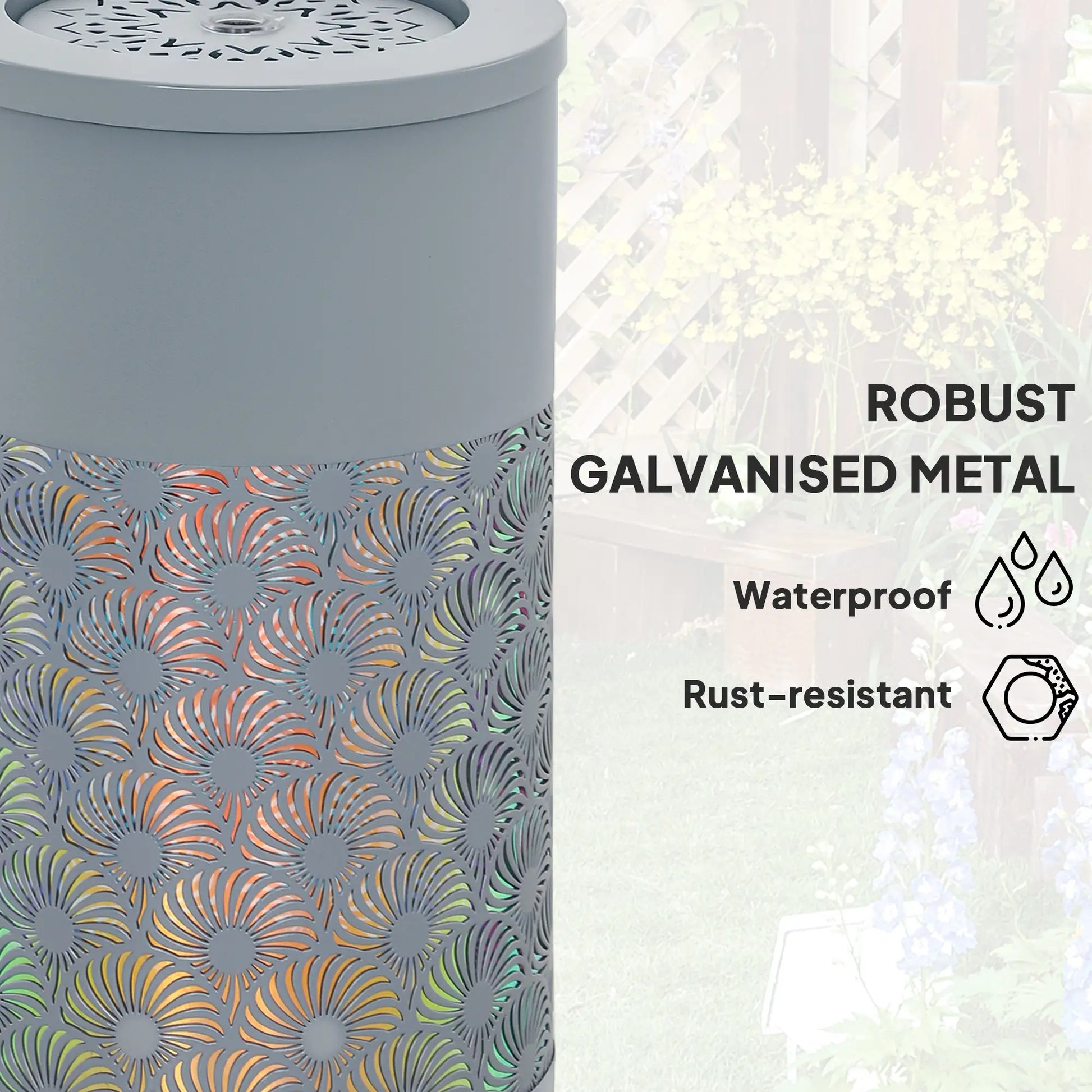 Outsunny Tall Garden Waterfall Fountain with LED Lights & Pump with Adjustable Flow for Indoor & Outdoor Decor, Light Grey