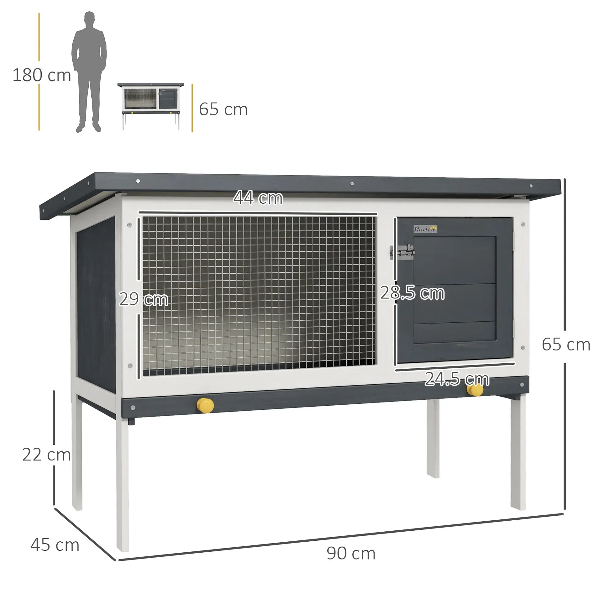PawHut Wooden Rabbit Hutch Guinea Pig Hutch Bunny Cage Small Animal Habitat Openable Asphalt Roof for Outdoor Use