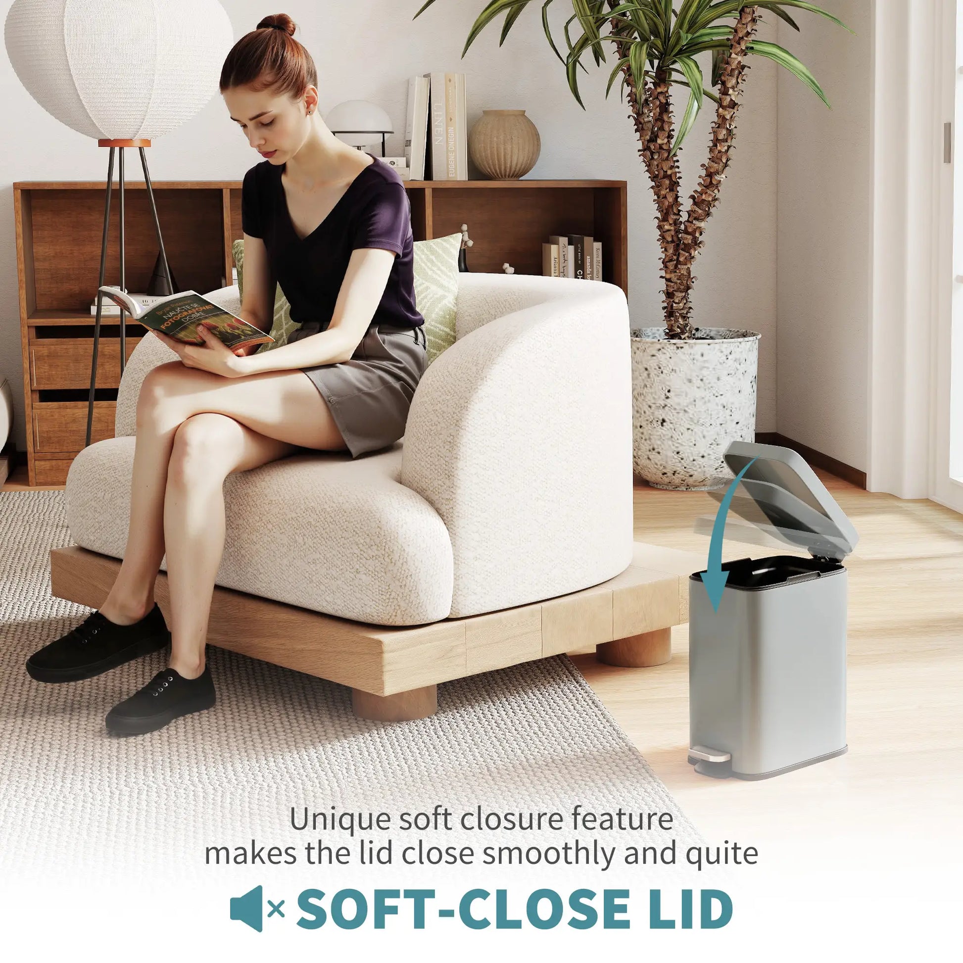 Quiet-Close Lid & Easy Foot Pedal: Its Soft-Close Lid Opens Quietly with The Extra-Large, Hand-free Foot Pedal So You Never Have To Touch The Lid To Use It.