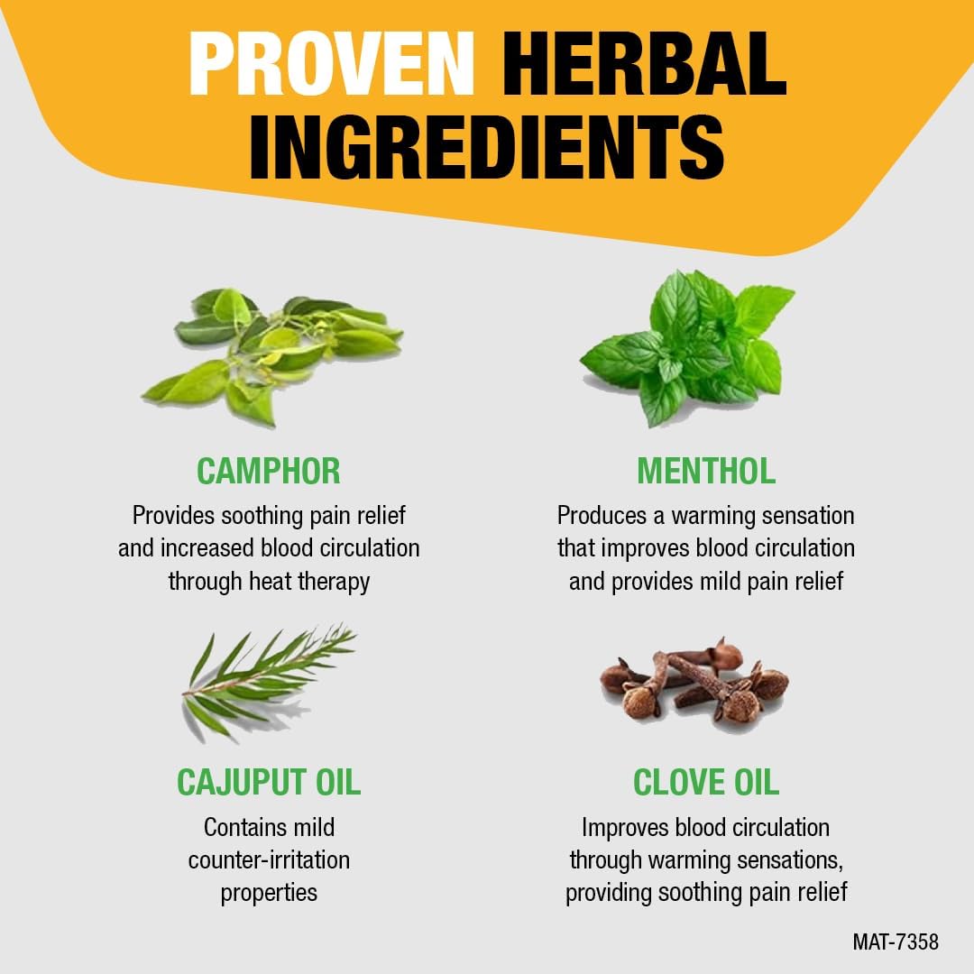 - Proven Active Herbal Ingredients – The Combination of Camphor and Menthol Delivers a Warming Sensation That Can Improve Blood Circulation and Provide Mild Pain Relief